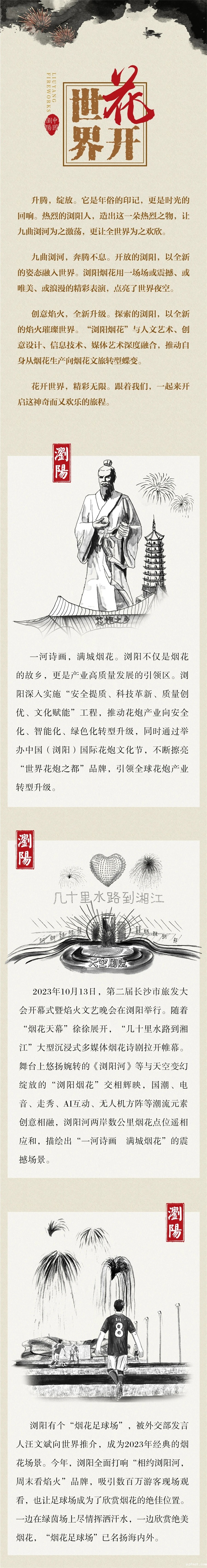 烟花,是起源于中国的浪漫。只一瞬间,璀璨整个夜空。1400多年前,花炮始祖李畋在浏阳发明了爆竹,书写了人间的平安喜乐。